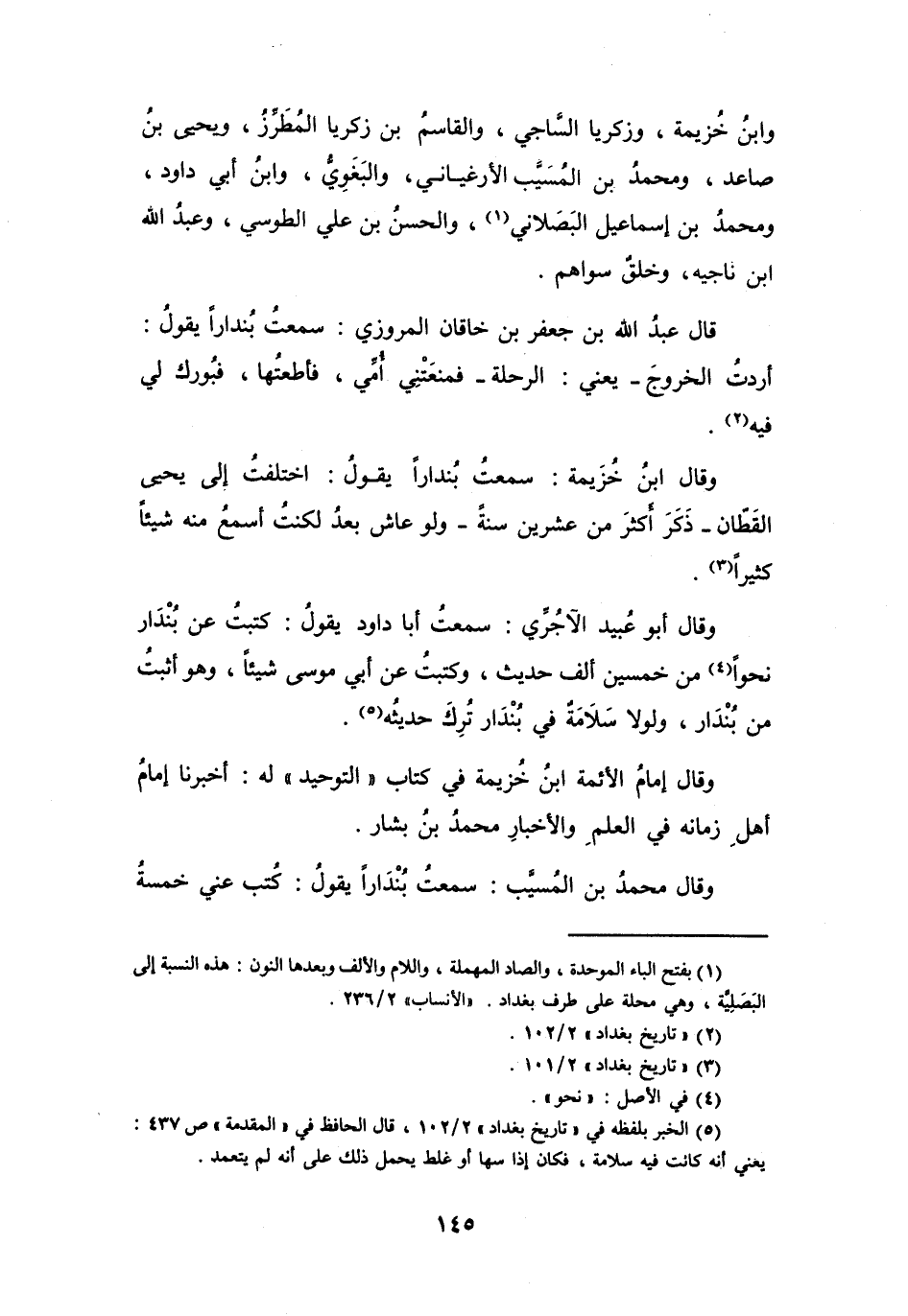 قَالَ عَبْدُ اللهِ بنُ جَعْفَرِ بنِ خَاقَانَ المَرْوَزِيُّ: سَمِعْتُ بُنْدَاراً يَقُوْلُ: