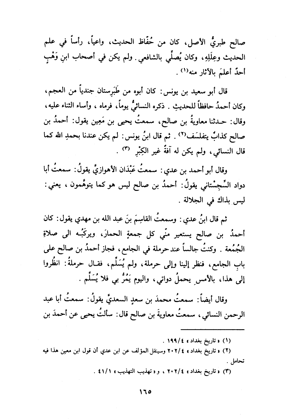 (2) " تاريخ بغداد " 4 / 202 وسينقل المؤلف عن ابن عدي أن قول ابن معين هذا فيه تحامل.