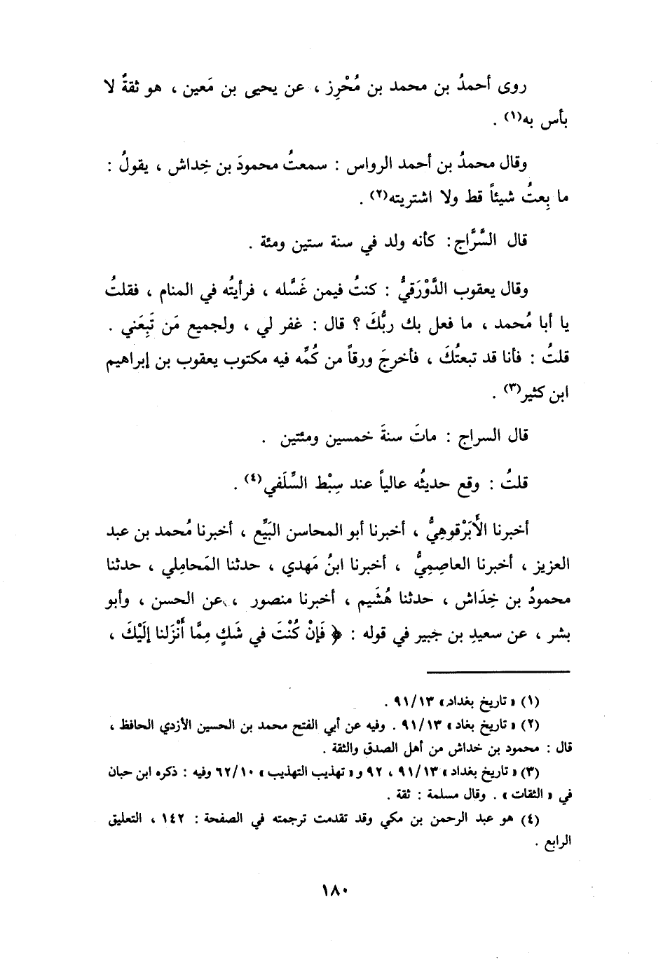 (3) " تاريخ بغداد " 13 / 91، 92، و" تهذيب التهذيب " 10 / 62 وفيه: ذكره ابن حبان في " الثقات ". وقال مسلمة: ثقة.