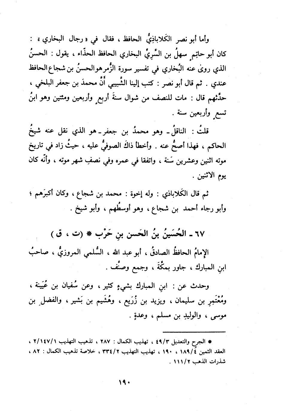 وَأَمَّا أَبُو نَصْرٍ الكَلاَبَاذِيُّ الحَافِظُ فَقَالَ فِي (رِجَالِ البُخَارِيِّ) :