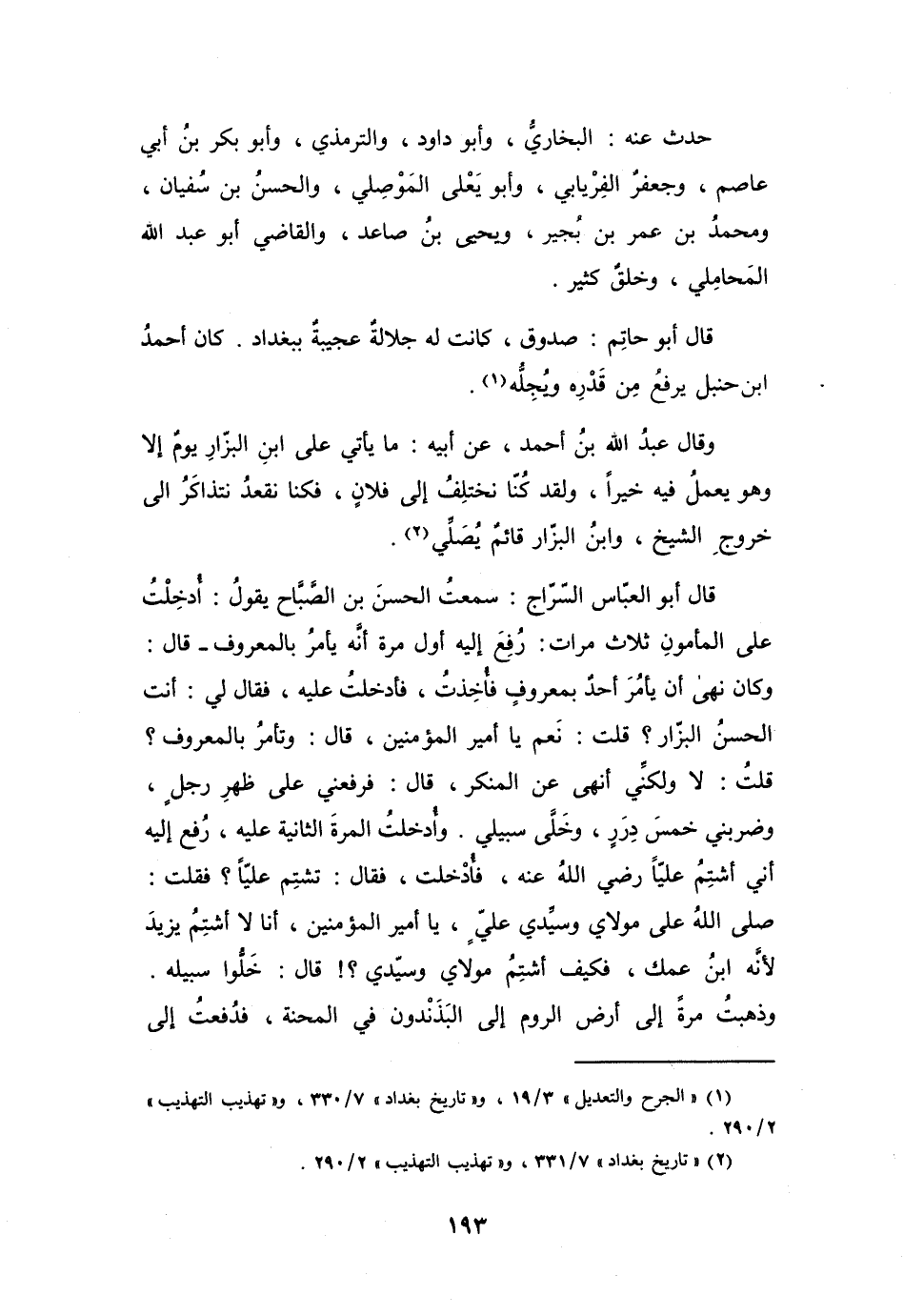 (2) " تاريخ بغداد " 7 / 331، و" تهذيب التهذيب " 2 / 290.