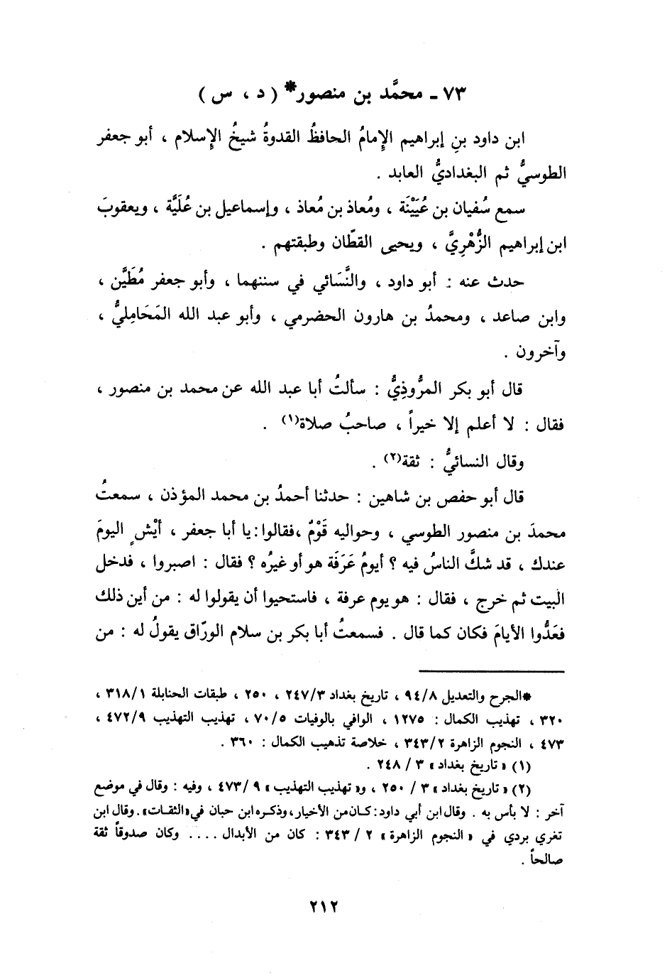 73 - مُحَمَّدُ بنُ مَنْصُوْرِ بنِ دَاوُدَ بنِ إِبْرَاهِيْمَ الطُّوْسِيُّ * (د، س)
