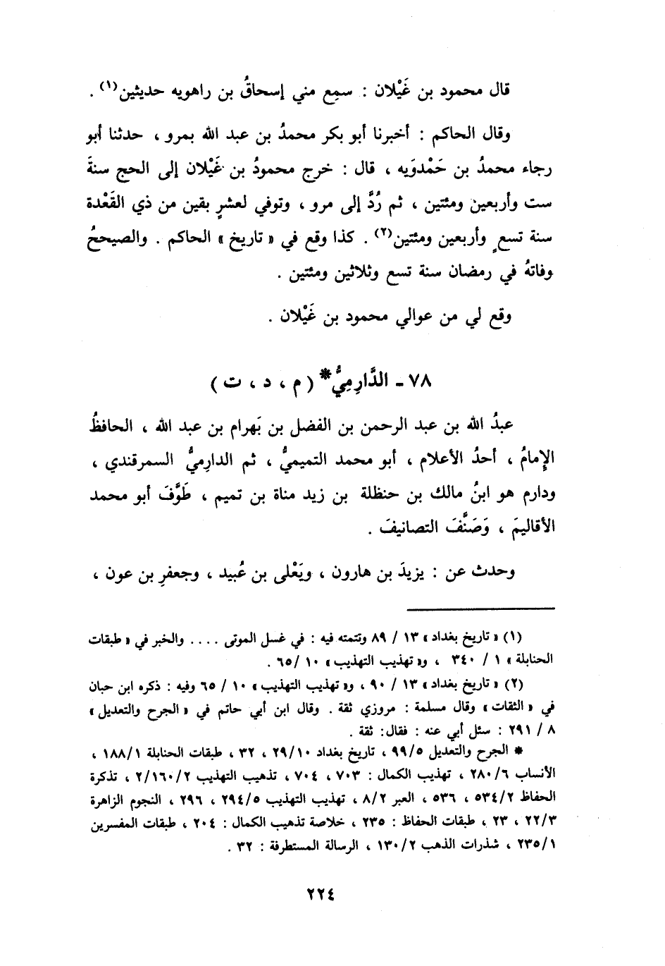 78 - الدَّارِمِيُّ عَبْدُ اللهِ بنُ عَبْدِ الرَّحْمَنِ بنِ الفَضْلِ * (م، د، ت)