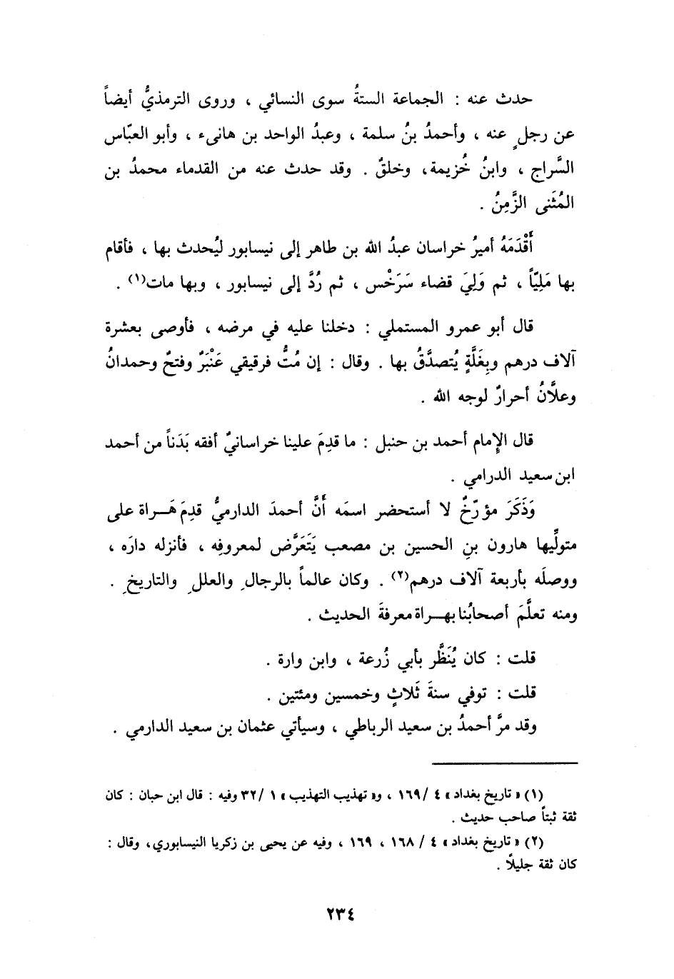 (2) " تاريخ بغداد " 4 / 168، 169، وفيه عن يحيى بن زكريا النيسابوري، وقال: كان ثقة جليلا.