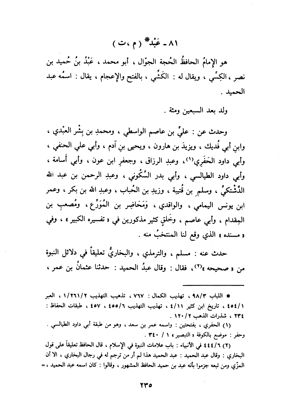 81 - عَبْدُ بنُ حُمَيْدِ بنِ نَصْرٍ الكِسِّيُّ * (م، ت)