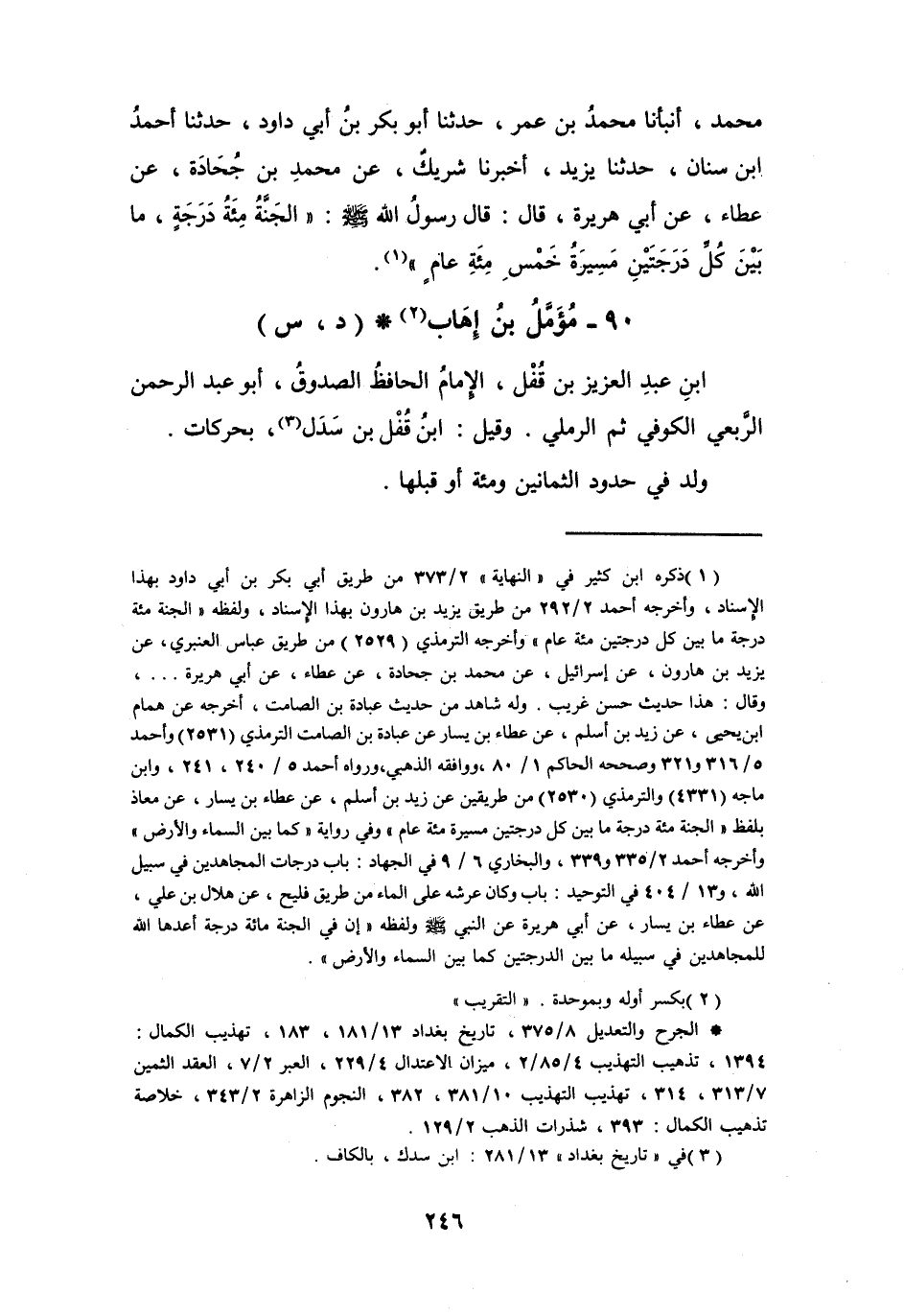 90 - مُؤَمَّلُ بنُ إِهَابِ بنِ عَبْدِ العَزِيْزِ بنِ قُفْلٍ الرَّبَعِيُّ (2) * (د، س)