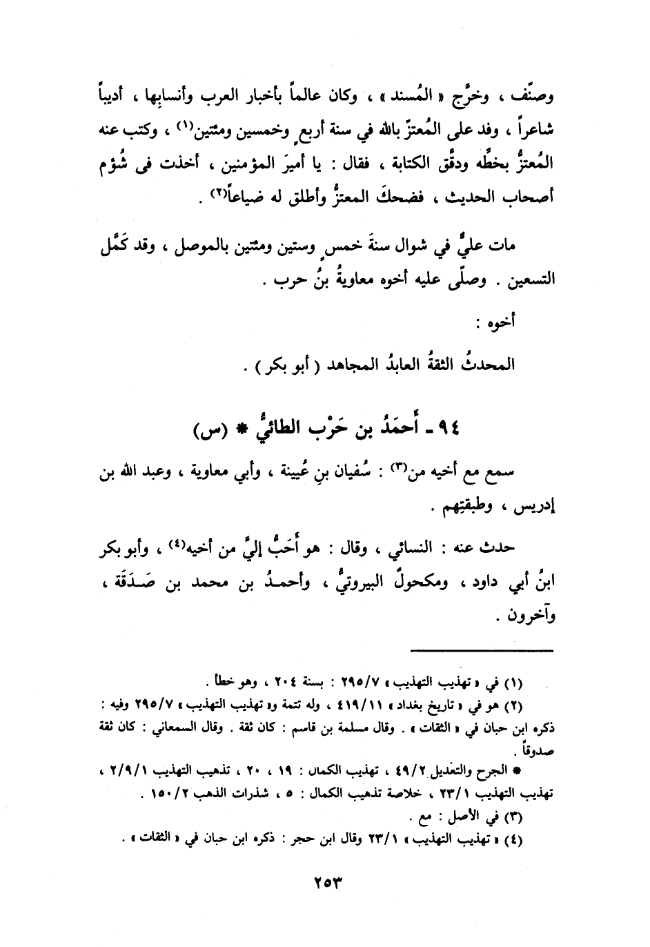 94 - أَبُو بَكْرٍ أَحْمَدُ بنُ حَرْبٍ الطَّائِيُّ * (س)