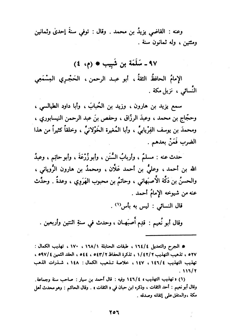 97 - سَلَمَةُ بنُ شَبِيْبٍ أَبُو عَبْدِ الرَّحْمَنِ الحَجْرِيُّ * (م، 4)