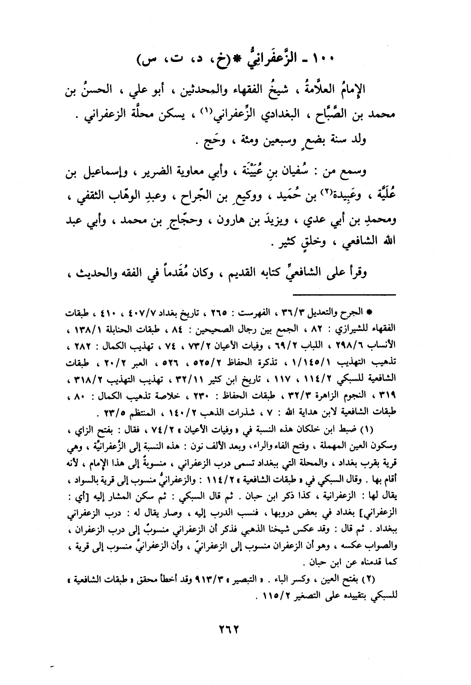 100 - الزَّعْفَرَانِيُّ الحَسَنُ بنُ مُحَمَّدِ بنِ الصَّبَّاحِ * (خَ، د، ت، س)
