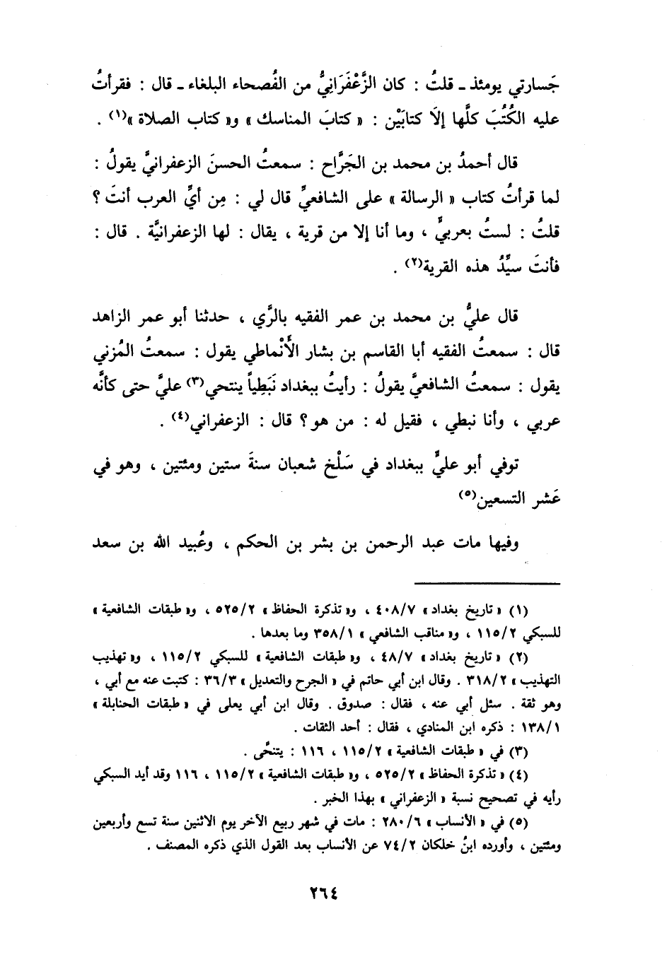 (4) " تذكرة الحفاظ " 2 / 525، و" طبقات الشافعية " 2 / 115، 116 وقد أيد السبكي رأيه في تصحيح نسبة " الزعفراني " بهذا الخبر.