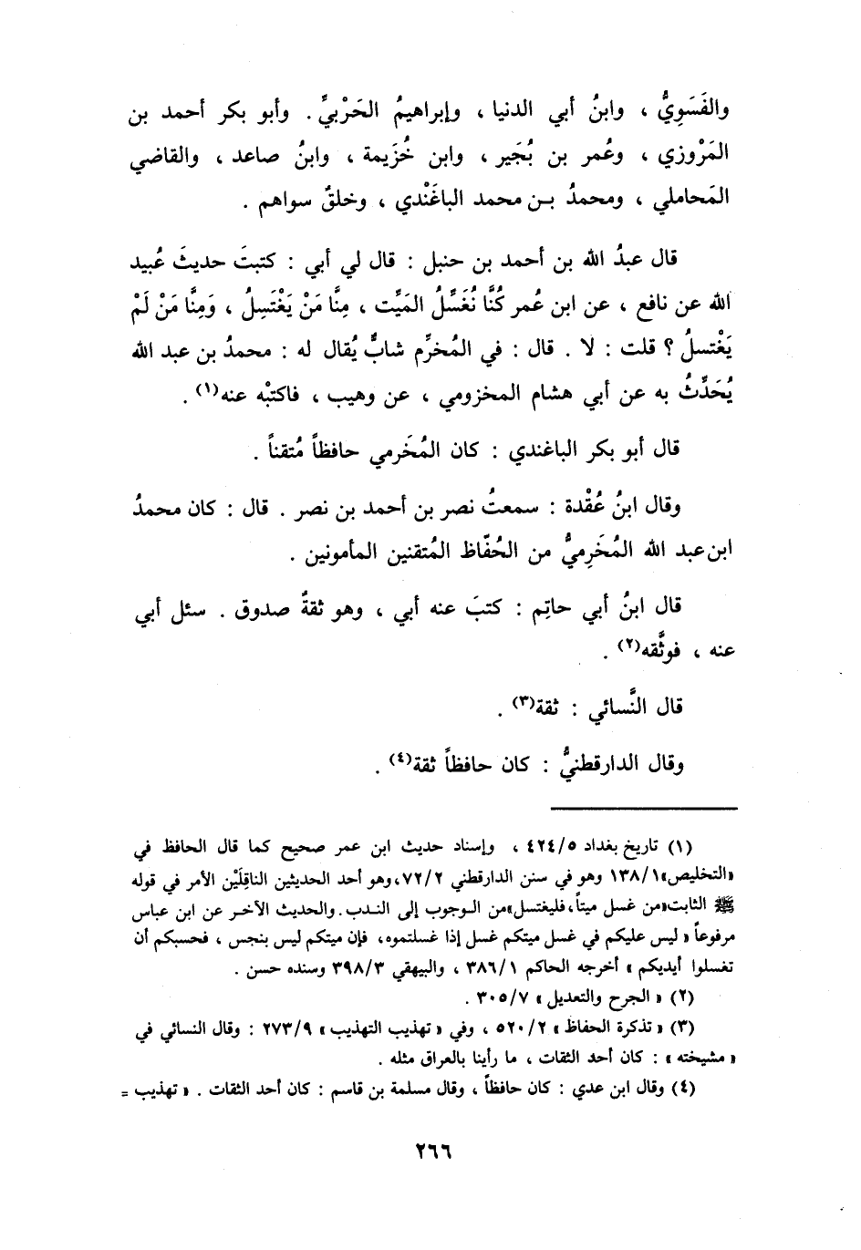 (1) تاريخ بغداد 5 / 424، وإسناد حديث ابن عمر صحيح كما قال الحافظ في " التخليص " 1 / 138 وهو في سنن الدارقطني 2 / 72، وهو أحد الحديثين الناقلين الامر في قوله صلى الله عليه وسلم الثابت " من غسل ميتا، فليغتسل " من الوجوب إلى الندب.