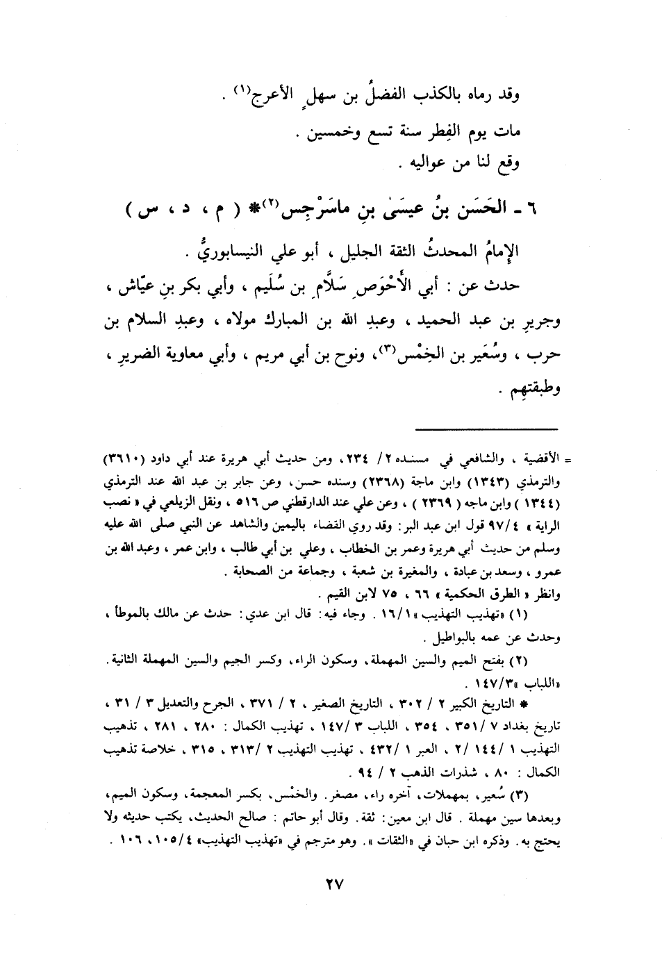 6 - الحَسَنُ بنُ عِيْسَى بنِ مَاسَرْجِسَ النَّيْسَابُوْرِيُّ (2) * (م، د، س)