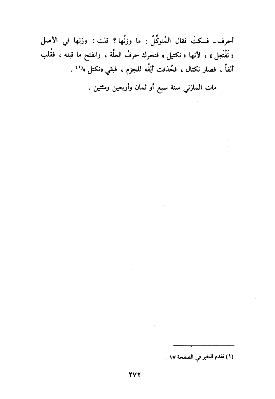 مَاتَ المَازِنِيُّ: سَنَةَ سَبْعٍ - أَوْ ثَمَانٍ - وَأَرْبَعِيْنَ وَمائَتَيْنِ.
