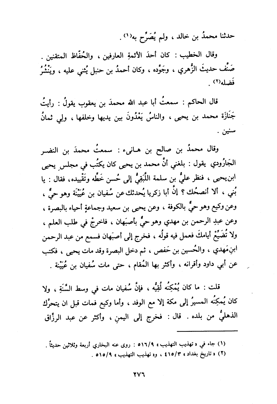 (2) " تاريخ بغداد " 3 / 415، و" تهذيب التهذيب " 9 / 515.