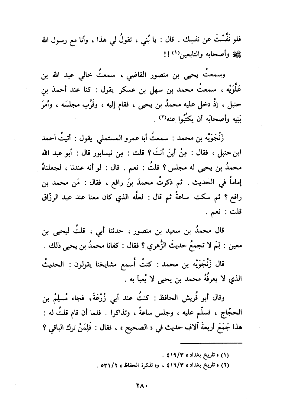 (2) " تاريخ بغداد " 3 / 416، و" تذكرة الحفاظ " 2 / 531.