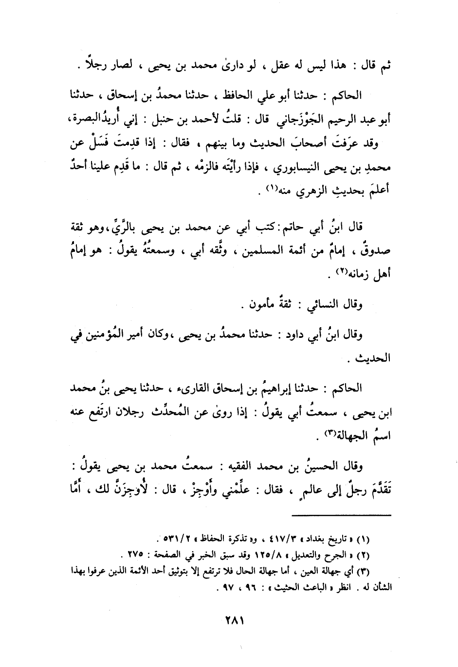 (1) " تاريخ بغداد " 3 / 417، و" تذكرة الحفاظ " 2 / 531.