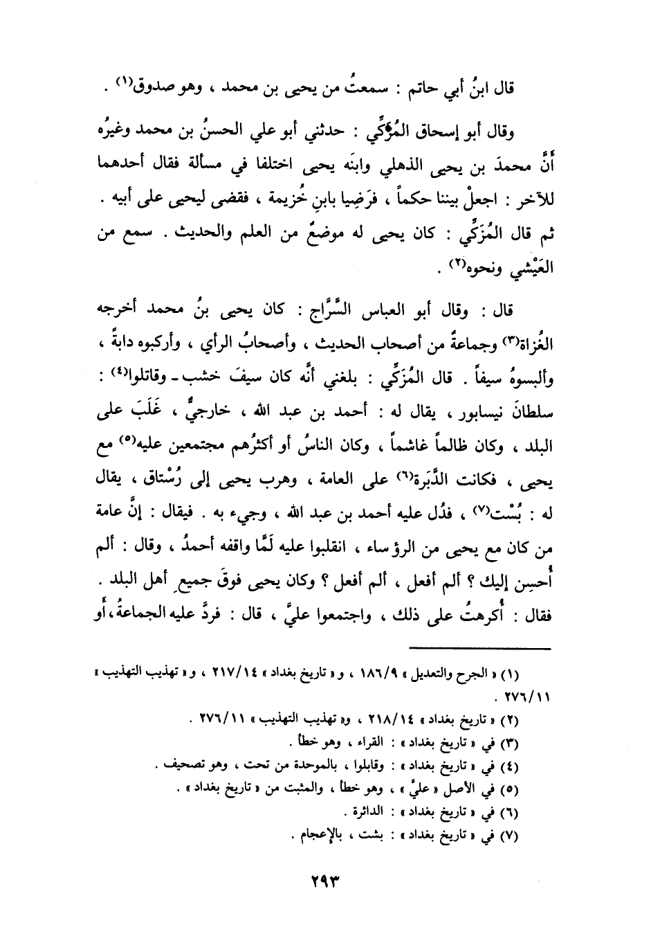 (2) " تاريخ بغداد " 14 / 218، و" تهذيب التهذيب " 11 / 276.