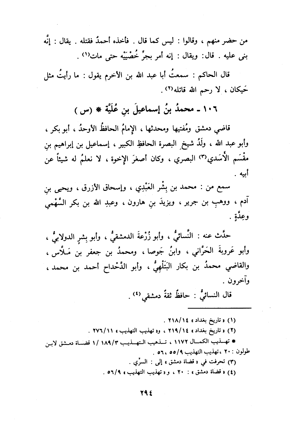 106 - مُحَمَّدُ بنُ إِسْمَاعِيْلَ بنِ عُلَيَّةَ الأَسَدِيُّ * (س)