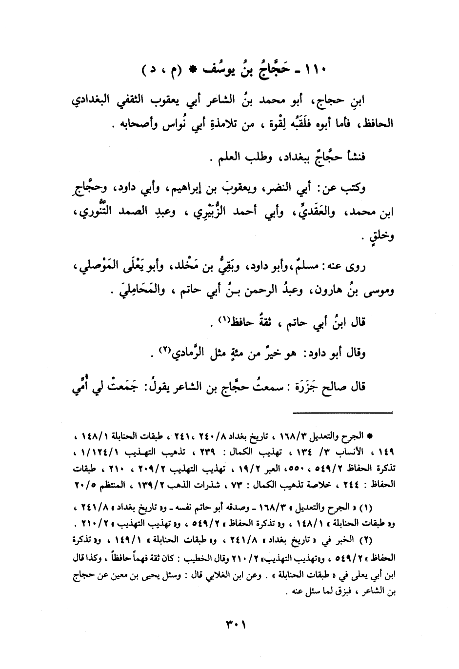 110 - حَجَّاجُ بنُ يُوْسُفَ بنِ حَجَّاجٍ أَبُو مُحَمَّدٍ بنُ الشَّاعِرِ أَبِي يَعْقُوْبَ الثَّقَفِيُّ * (م، د)