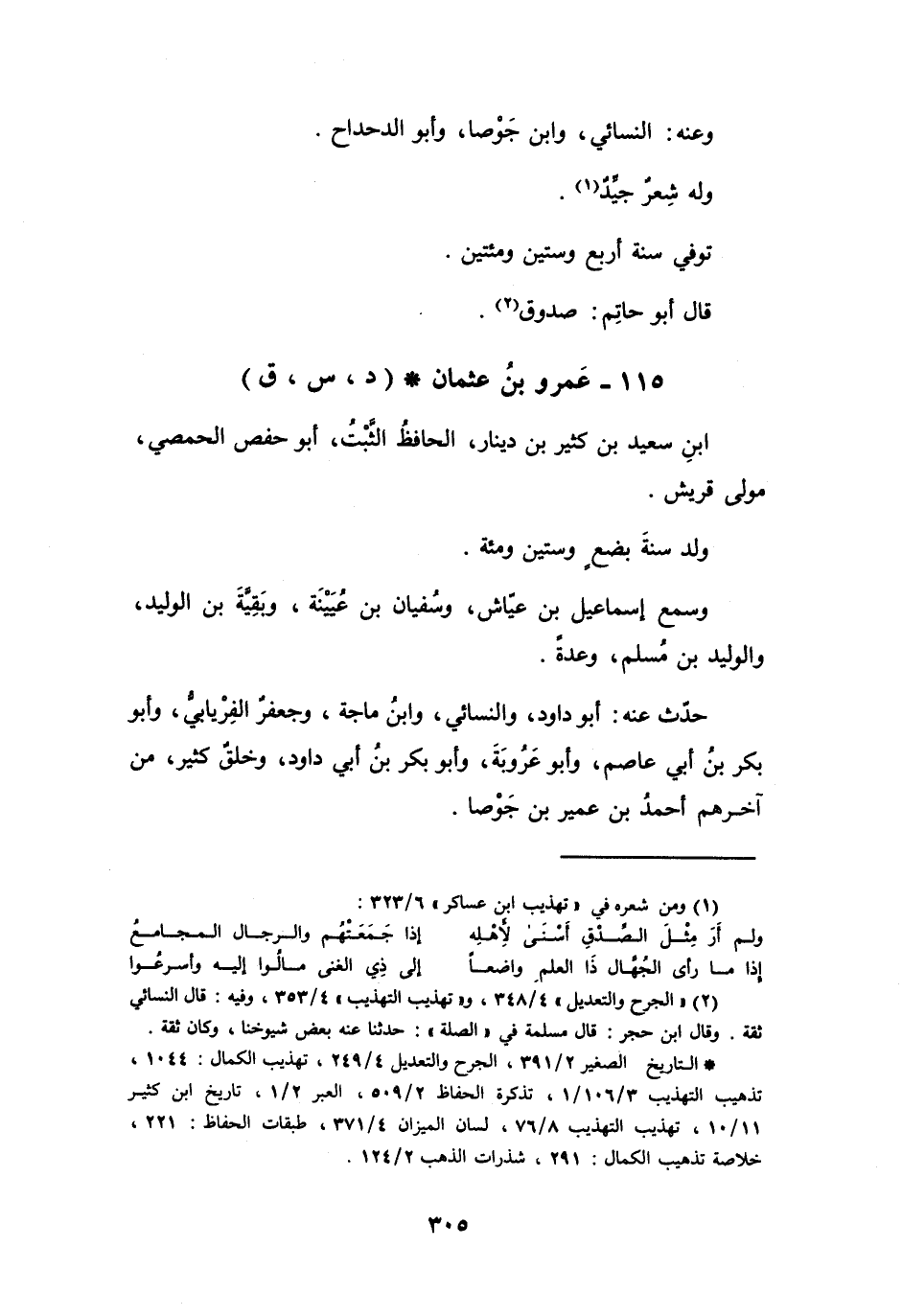 115 - عَمْرُو بنُ عُثْمَانَ بنِ سَعِيْدِ بنِ كَثِيْرِ بنِ دِيْنَارٍ الحِمْصِيُّ * (د، س، ق)