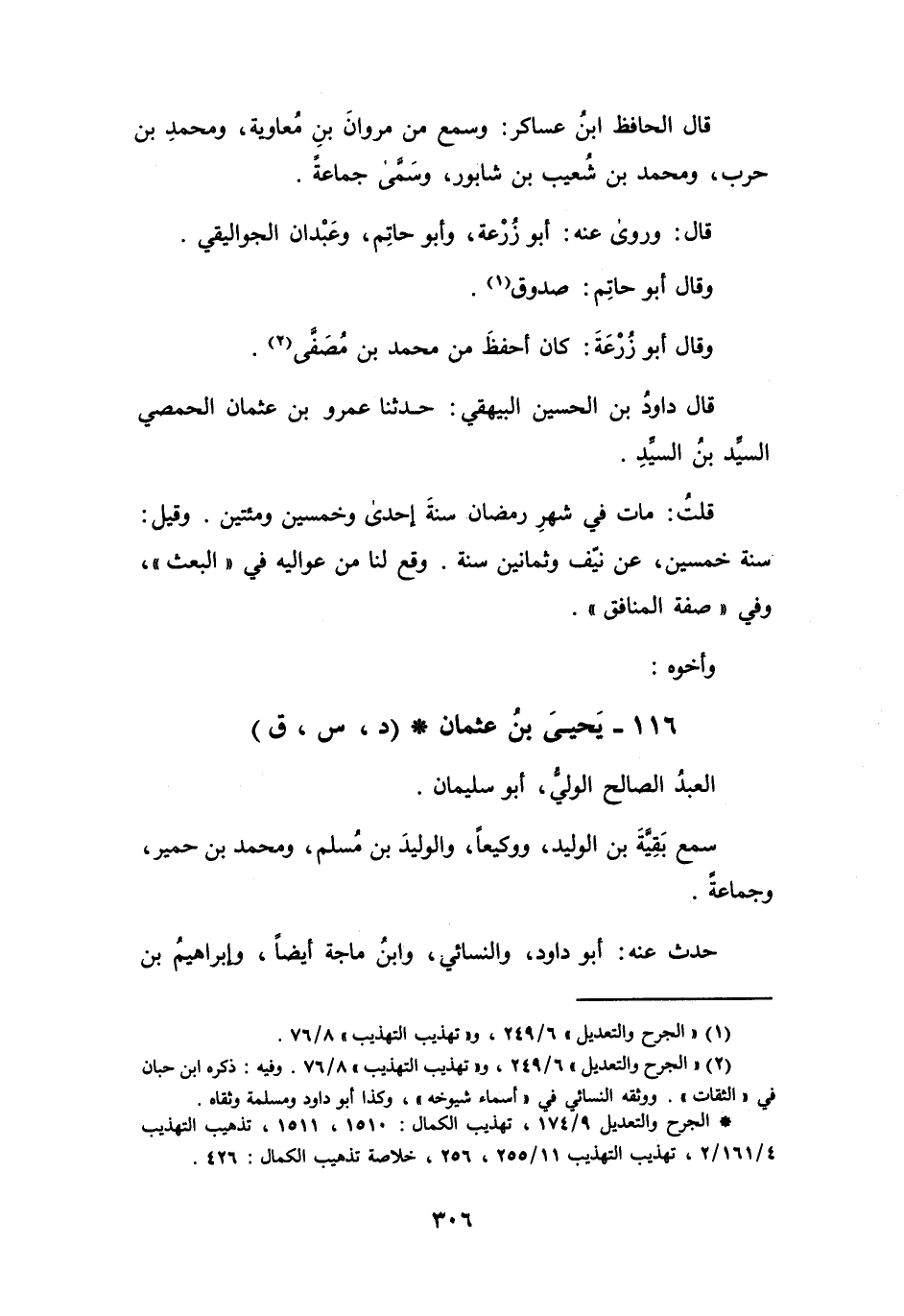 116 - يَحْيَى بنُ عُثْمَانَ أَبُو سُلَيْمَانَ الحِمْصِيُّ * (د، س، ق)