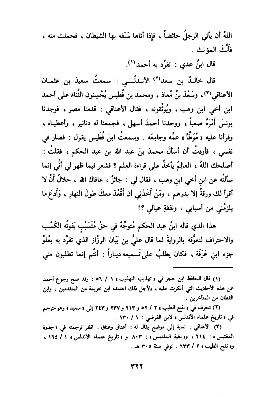 وَسَمِعْتُ ابْنَ فُطَيسٍ يَقُوْلُ: فصَارَ فِي نَفْسِي، فَأَردْتُ أَنْ أَسْأَلَ مُحَمَّدَ بنَ عَبْدِ اللهِ بنِ عَبْدِ الحَكَمِ، فَقُلْتُ: أَصْلَحَكَ اللهُ، العَالِمُ يَأْخُذُ عَلَى قِرَاءةِ العِلْمِ؟