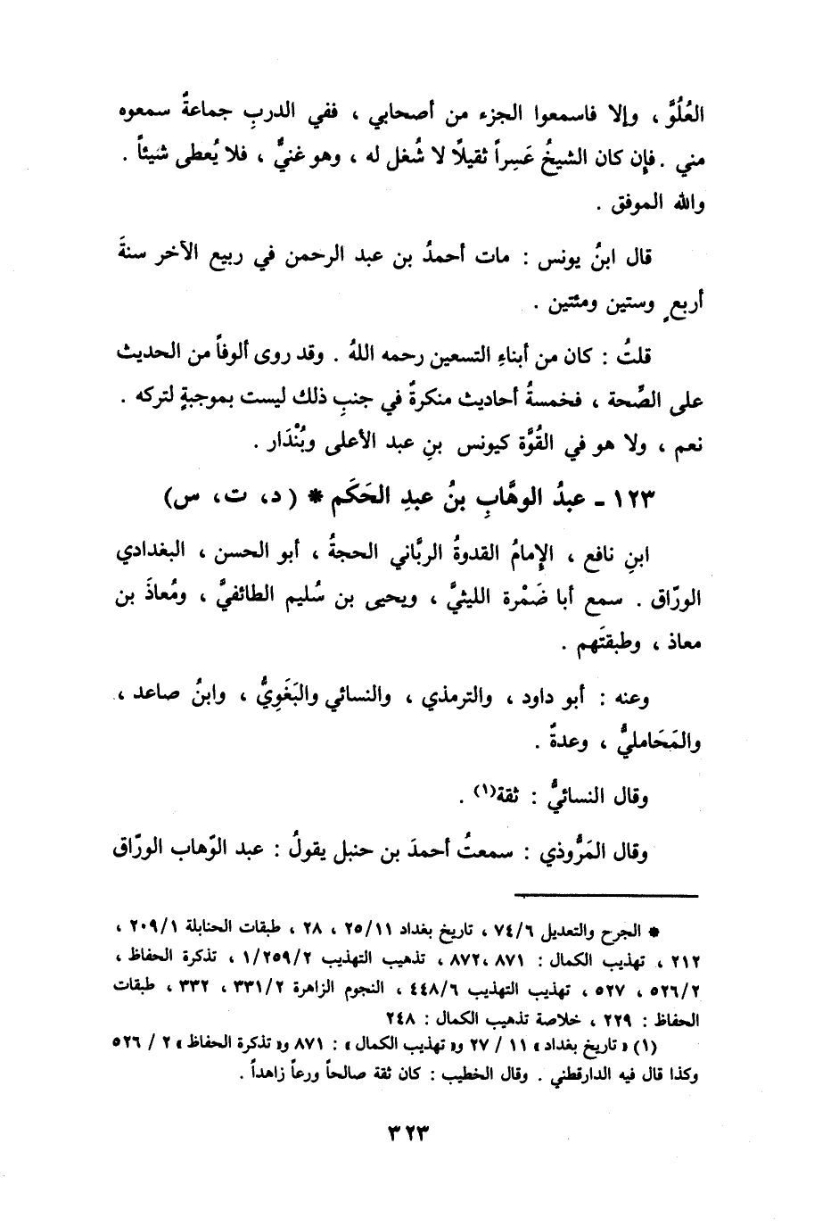 123 - عَبْدُ الوَهَّابِ بنُ عَبْدِ الحَكَمِ بنِ نَافِعٍ البَغْدَادِيُّ * (د، ت، س)