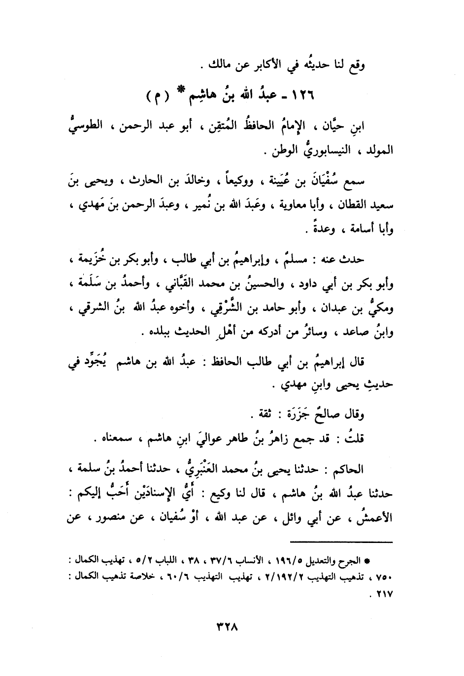 126 - عَبْدُ اللهِ بنُ هَاشِمِ بنِ حَيَّانَ الطُّوْسِيُّ * (م)