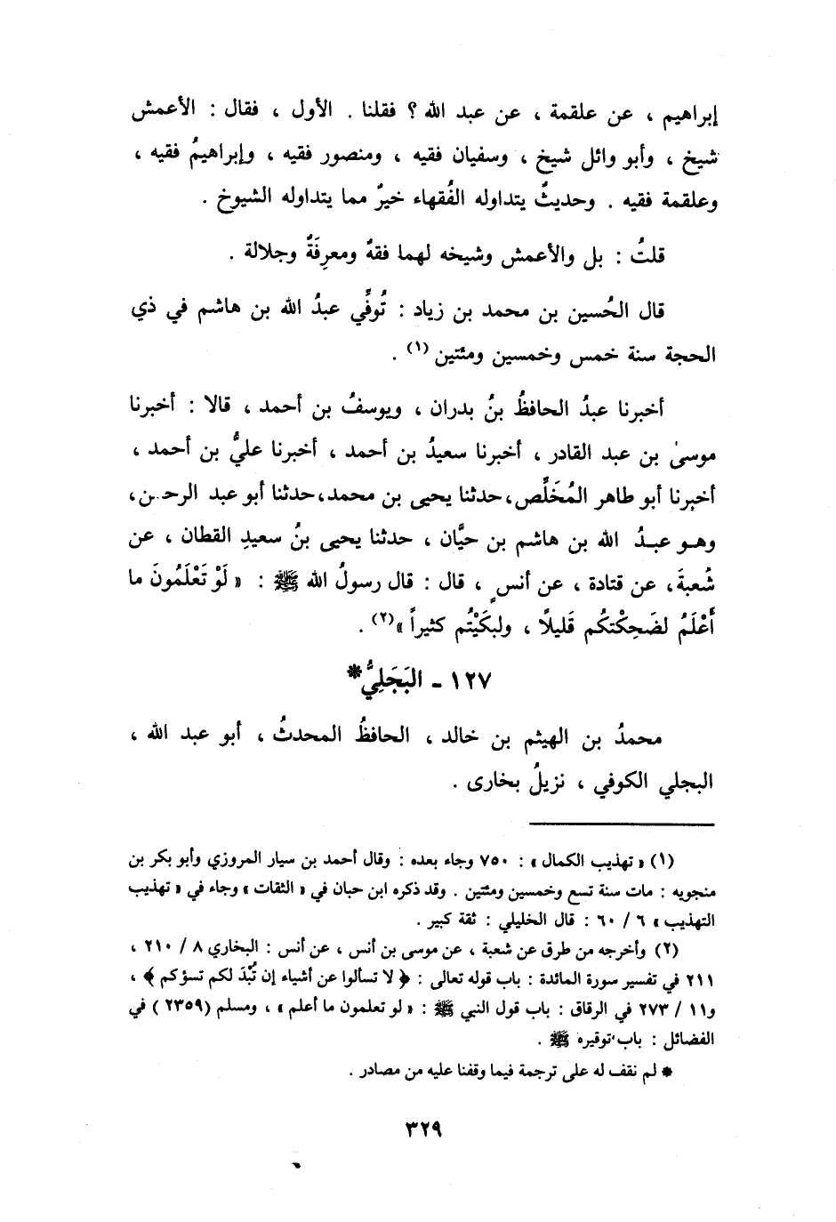 127 - البَجَلِيُّ مُحَمَّدُ بنُ الهَيْثَمِ بنِ خَالِدٍ *