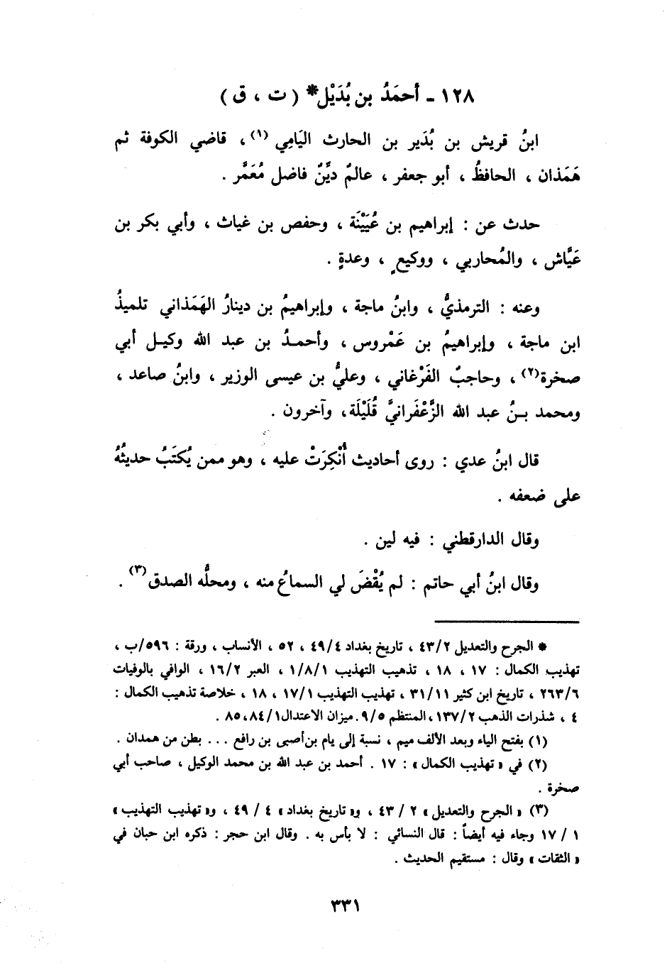 128 - أَحْمَدُ بنُ بُدَيْلِ بنِ قُرَيْشِ بنِ بُدَيرِ بنِ الحَارِثِ اليَامِيُّ * (ت، ق (1))