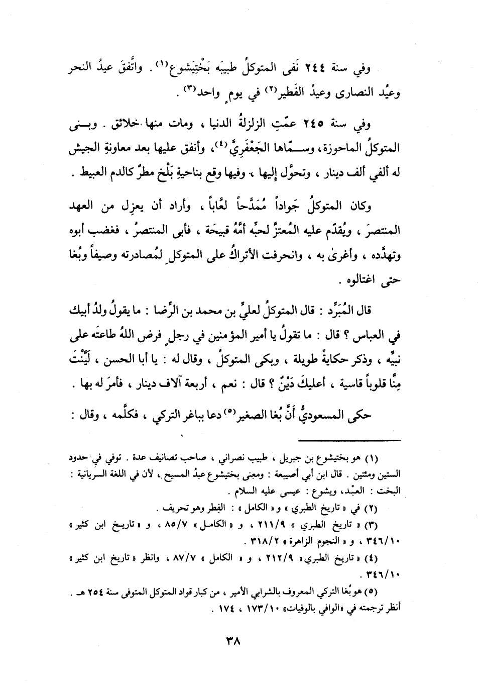 (5) هو بغا التركي المعروف بالشرابي الأمير، من كبار قواد المتوكل المتوفى سنة 254 هـ.