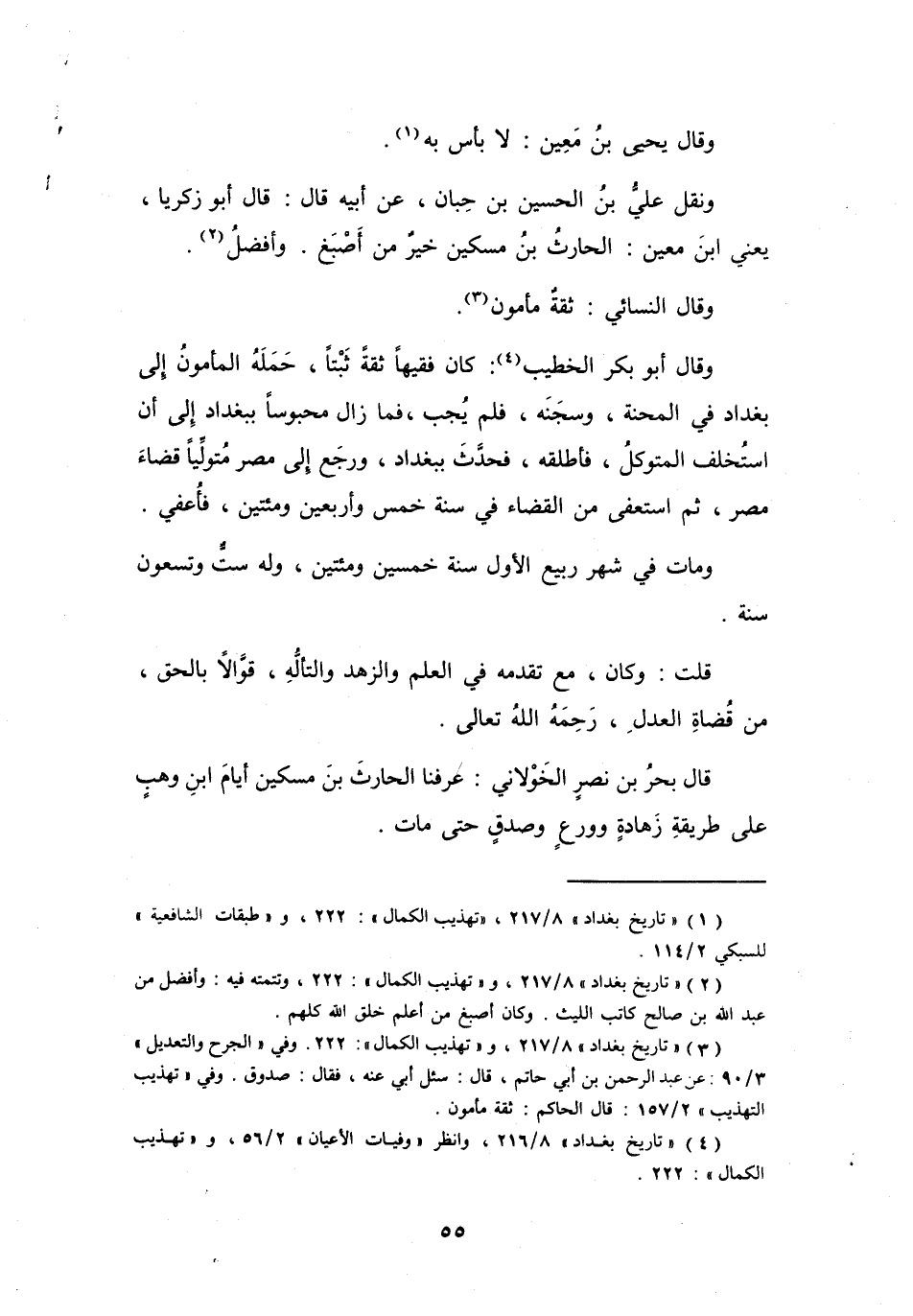 (2) " تاريخ بغداد " 8 / 217، و" تهذيب الكمال ": 222، وتتمته فيه: وأفضل من عبد الله بن صالح كاتب الليث.