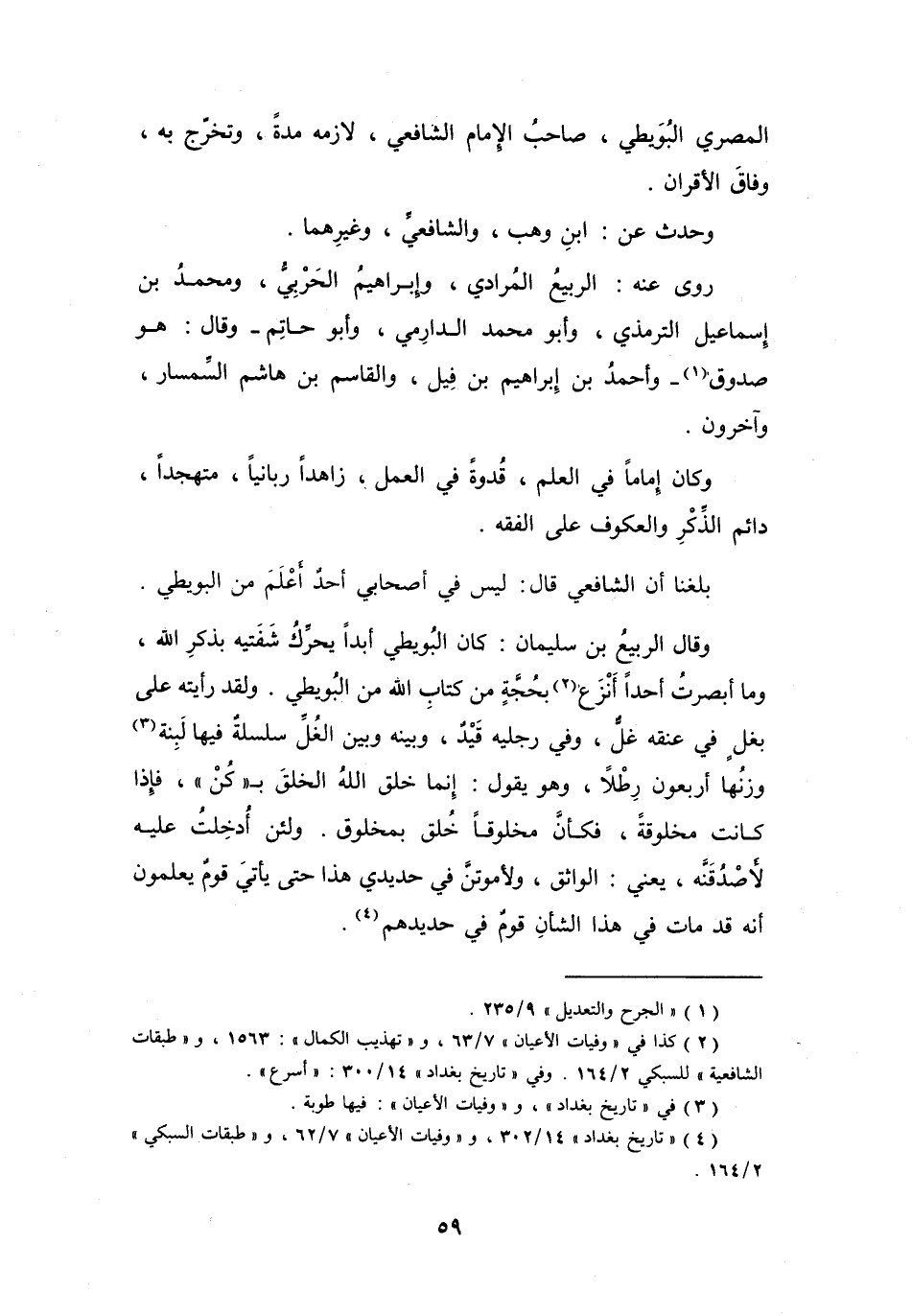 (4) " تاريخ بغداد " 14 / 302، و" وفيات الأعيان " 7 / 62، و" طبقات السبكي " 2 / 164.