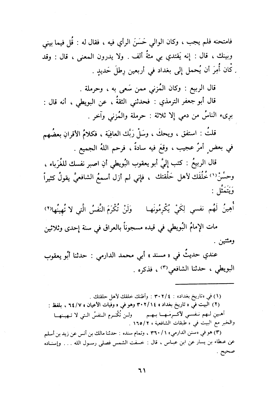 قَالَ الرَّبِيْعُ: كَتَبَ إِلَيَّ أَبُو يَعْقُوْبَ البُوَيْطِيُّ: