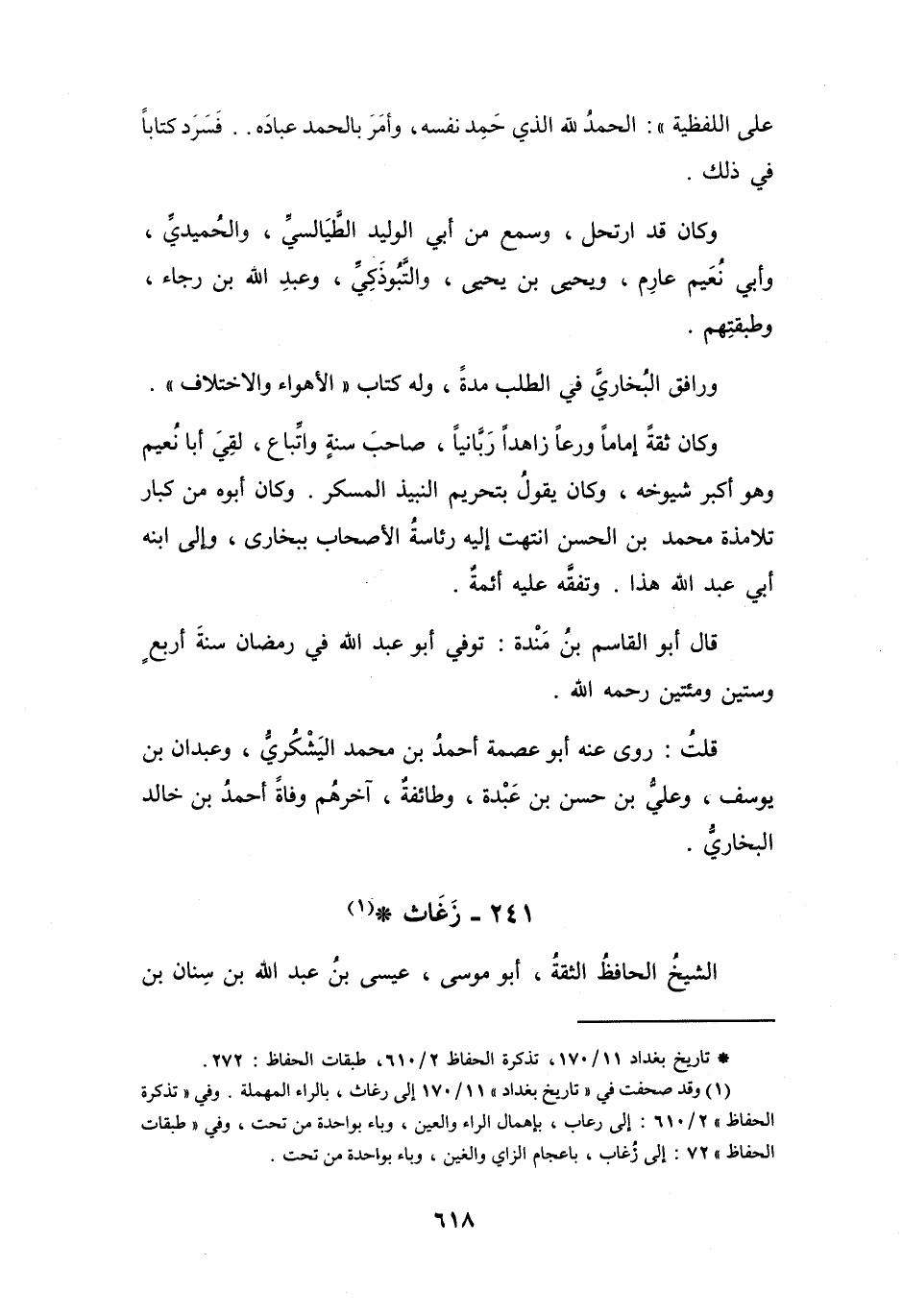 241 - زَغَاث أَبُو مُوْسَى عِيْسَى بن عَبْدِ اللهِ البَغْدَادِيُّ * (1)