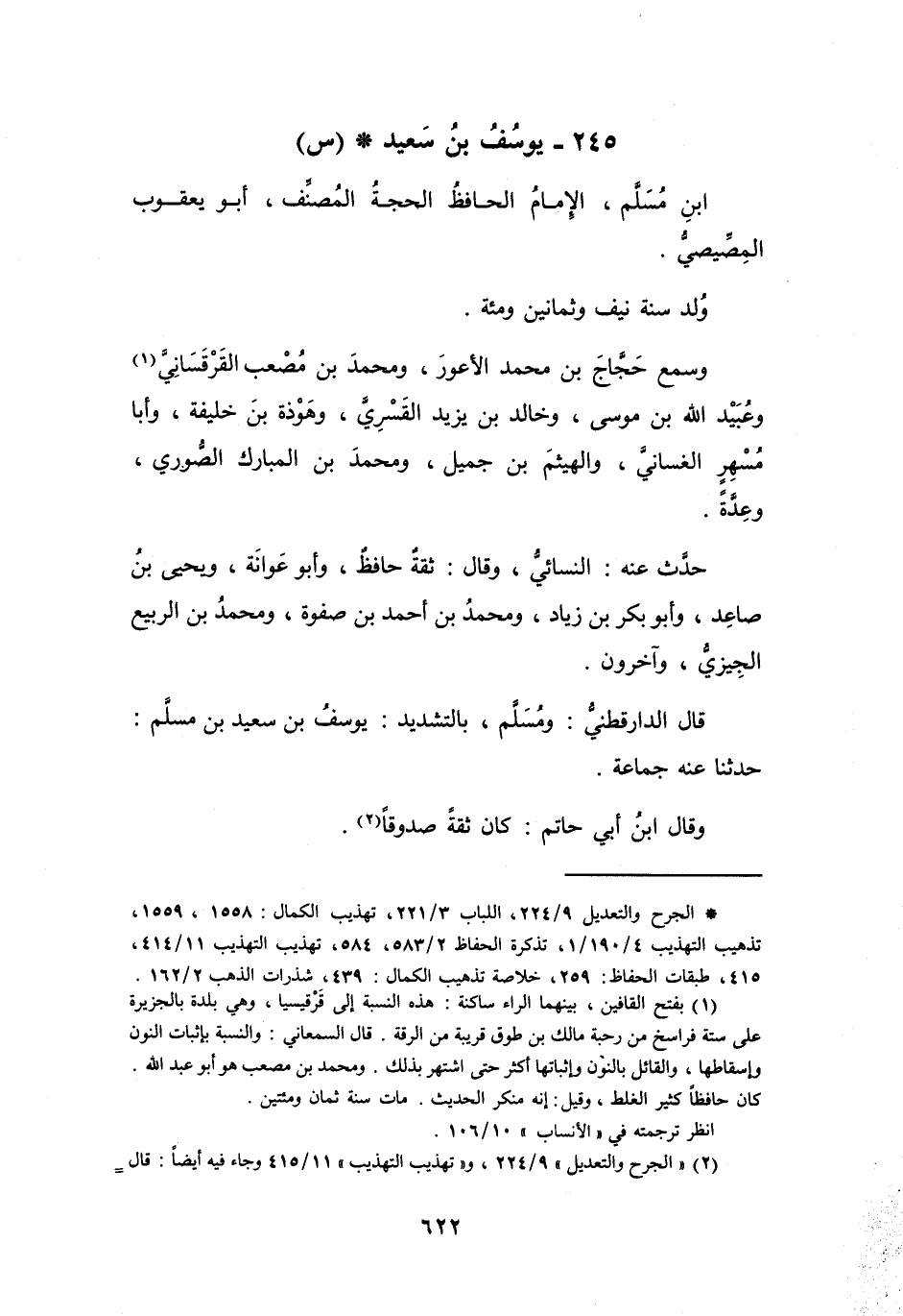 245 - يُوْسُف بنُ سَعِيْدِ بنِ مُسَلَّم أَبُو يَعْقُوْبَ المِصِّيْصِيُّ * (س)