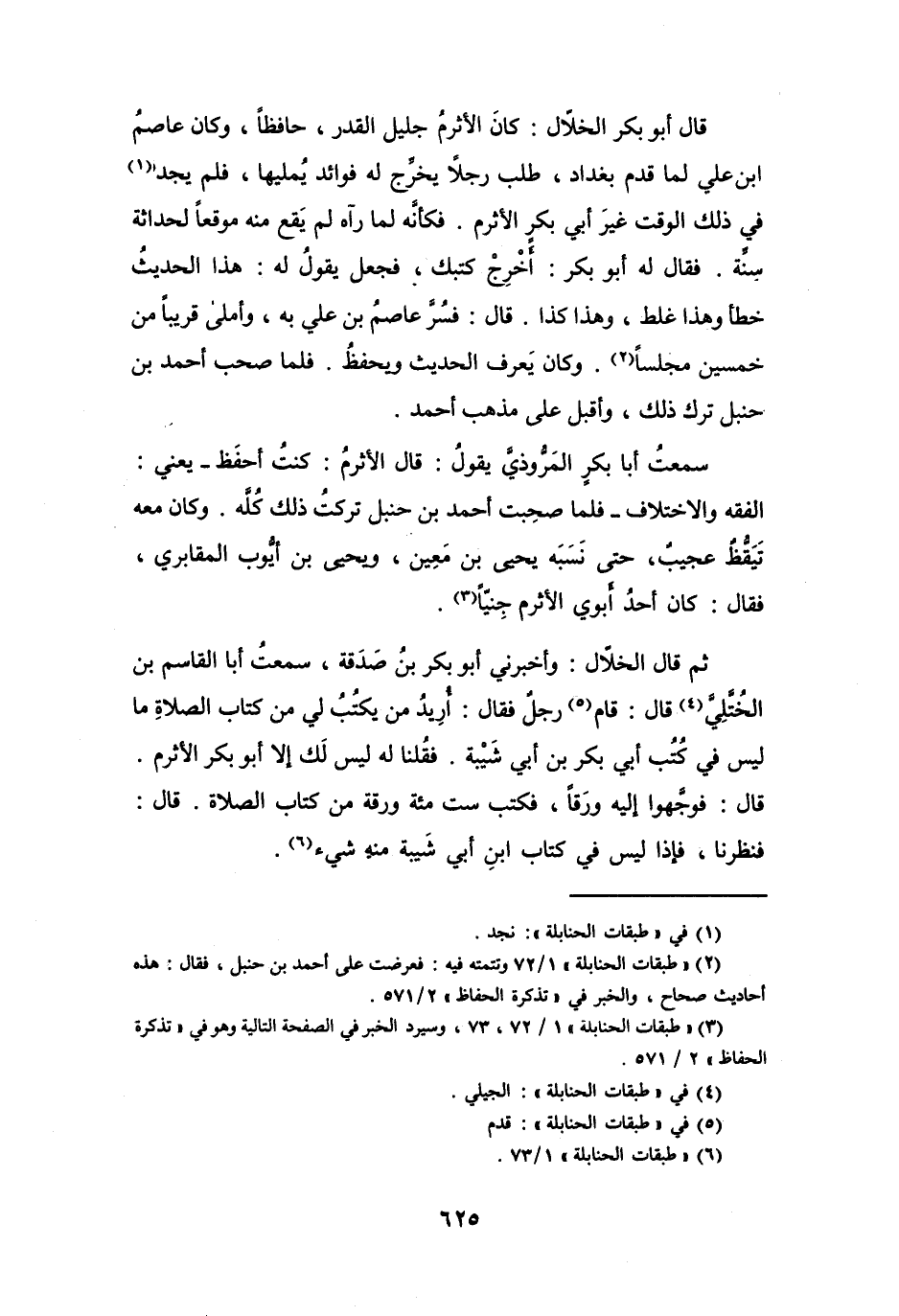 (2) " طبقات الحنابلة " 1 / 72 وتتمته فيه: فعرضت على أحمد بن حنبل، فقال: هذه أحاديث صحاح، والخبر في " تذكرة الحفاظ " 2 / 571.