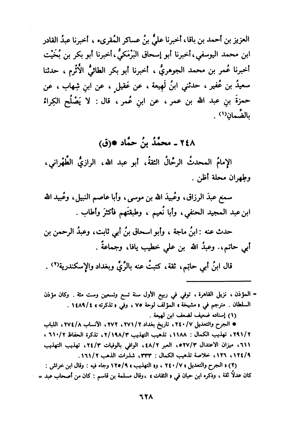 248 - مُحَمَّدُ بنُ حَمَّادٍ أَبُو عَبْدِ اللهِ الرَّازِيُّ * (ق)