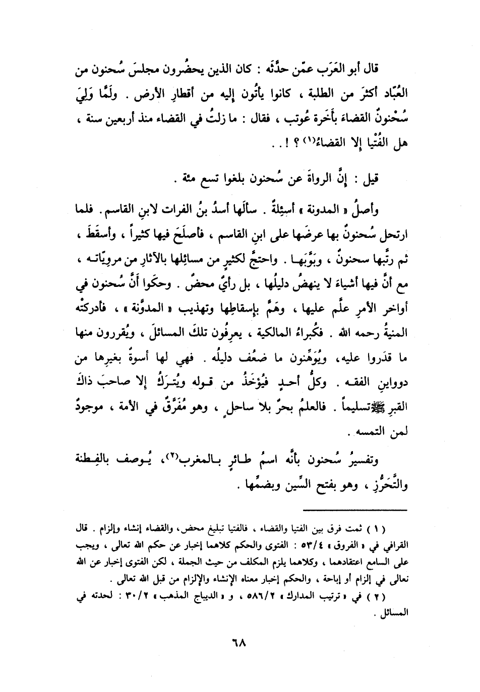 وَلَمَّا وَلِيَ سَحْنُوْنُ القَضَاءَ بِأَخَرَةٍ، عُوْتِبَ، فَقَالَ: مَا زِلْتُ فِي القَضَاءِ مُنْذُ أَرْبَعِيْنَ سَنَةً، هَلِ الفُتْيَا إِلا القَضَاءُ (1) ؟!