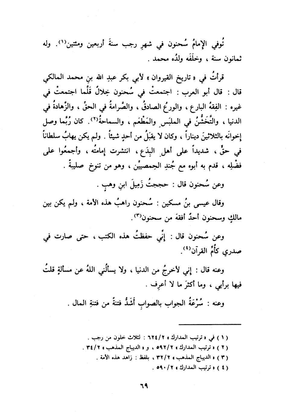 وَعَنْ سَحْنُوْنَ، قَالَ: إِنِّي حَفِظْتُ هَذِهِ الكُتُبَ، حَتَّى صَارَتْ فِي صَدْرِي كَأُمِّ القُرْآنِ (4) .