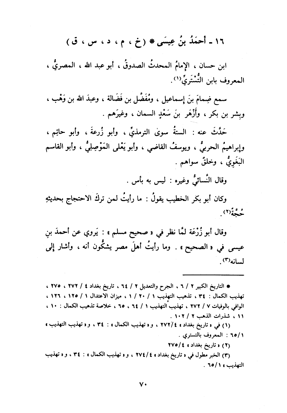 16 - أَحْمَدُ بنُ عِيْسَى بنِ حَسَّانٍ، ابْنُ التُّسْتَرِيِّ * (خَ، م، د، س، ق)