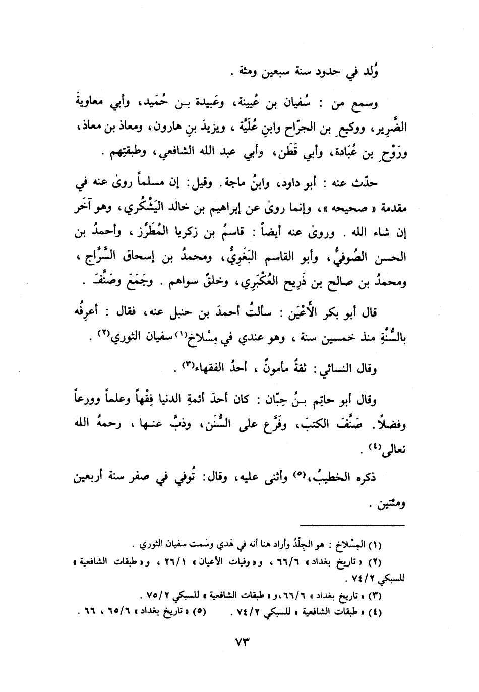 (3) " تاريخ بغداد " 6 / 66، و" طبقات الشافعية " للسبكي 2 / 75.