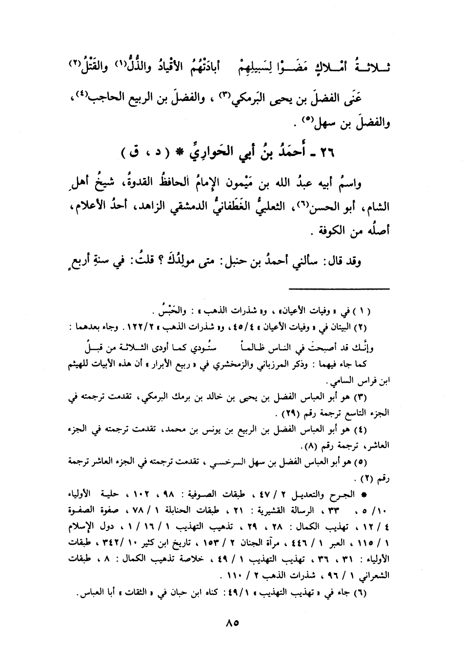 (*) الجرح والتعديل 2 / 47، طبقات الصوفية: 98، 102، حلية الأولياء 10 / 5، 33، الرسالة القشيرية: 21، طبقات الحنابلة 1 / 78، صفوة الصفوة 4 / 12، تهذيب الكمال: 28، 29، تذهيب التهذيب 1 / 16 / 1، دول الإسلام 1 / 115، العبر 1 / 446، مرآة الجنان 2 / 153، تاريخ ابن كثير 10 / 342، طبقات الأولياء: 31، 36، تهذيب التهذيب 1 / 49، خلاصة تذهيب الكمال: 8، طبقات الشعراني 1 / 96، شذرات الذهب 2 / 110.