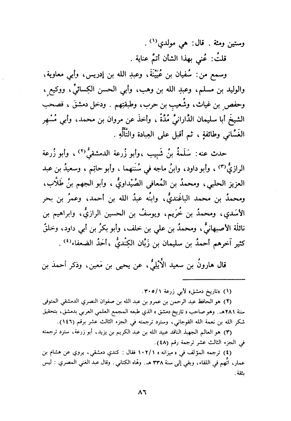 (1) " تاريخ دمشق " لأبي زرعة 1 / 305.