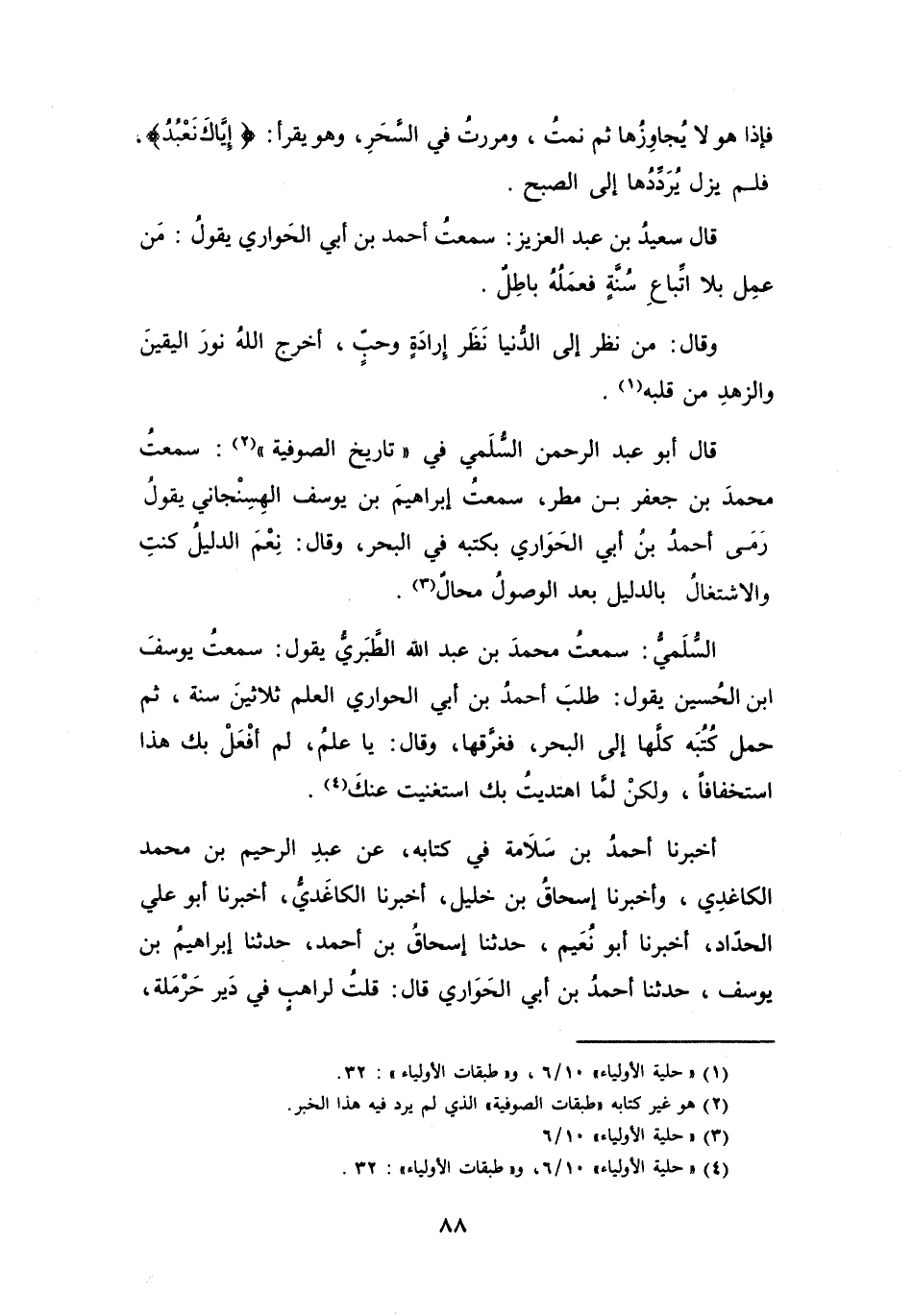 (4) " حلية الأولياء " 10 / 6، و" طبقات الأولياء ": 32.