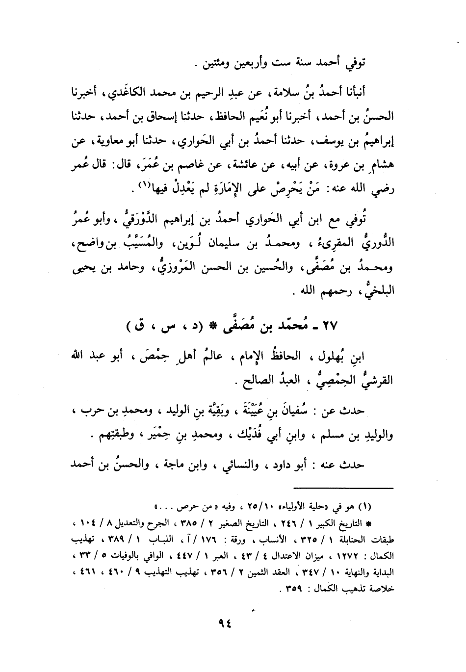 27 - مُحَمَّدُ بنُ مُصَفَّى بنِ بُهْلُوْلٍ القُرَشِيُّ * (د، س، ق)