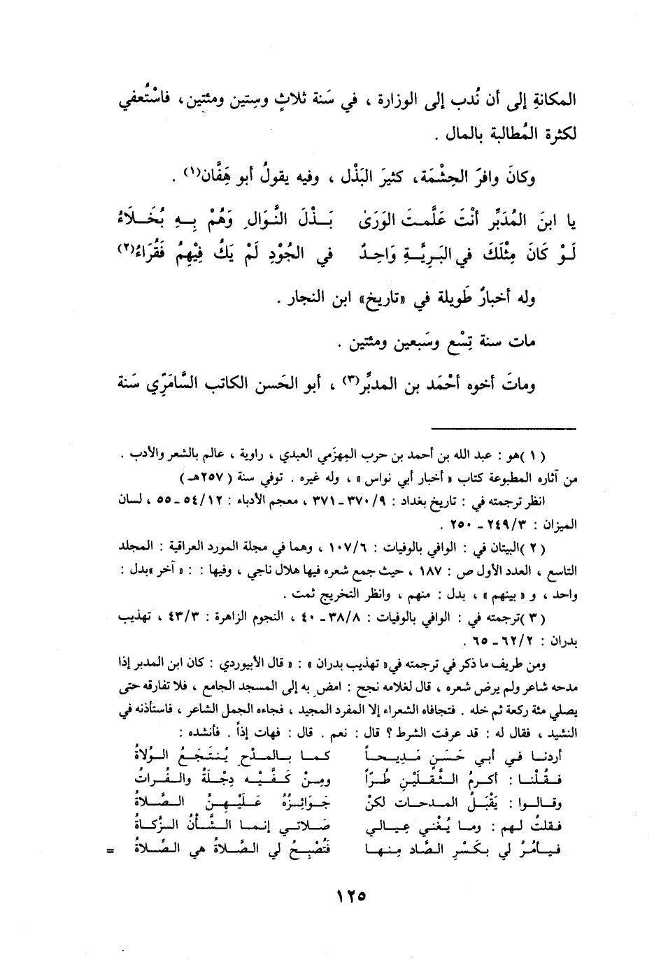 وَكَانَ وَافِرَ الحِشْمَةِ، كَثِيْرَ البَذْلِ، وَفِيْهِ يَقُوْلُ أَبُو هِفَّانَ (1) :