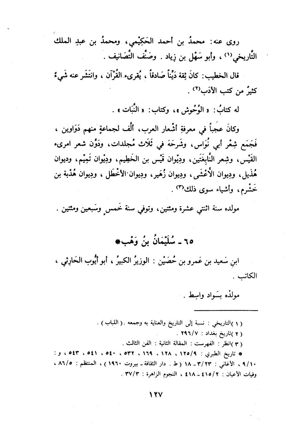 65 - سُلَيْمَانُ بنُ وَهْبِ بنِ سَعِيْدِ بنِ عَمْرِو بنِ حُصَيْنٍ الحَارِثِيُّ *