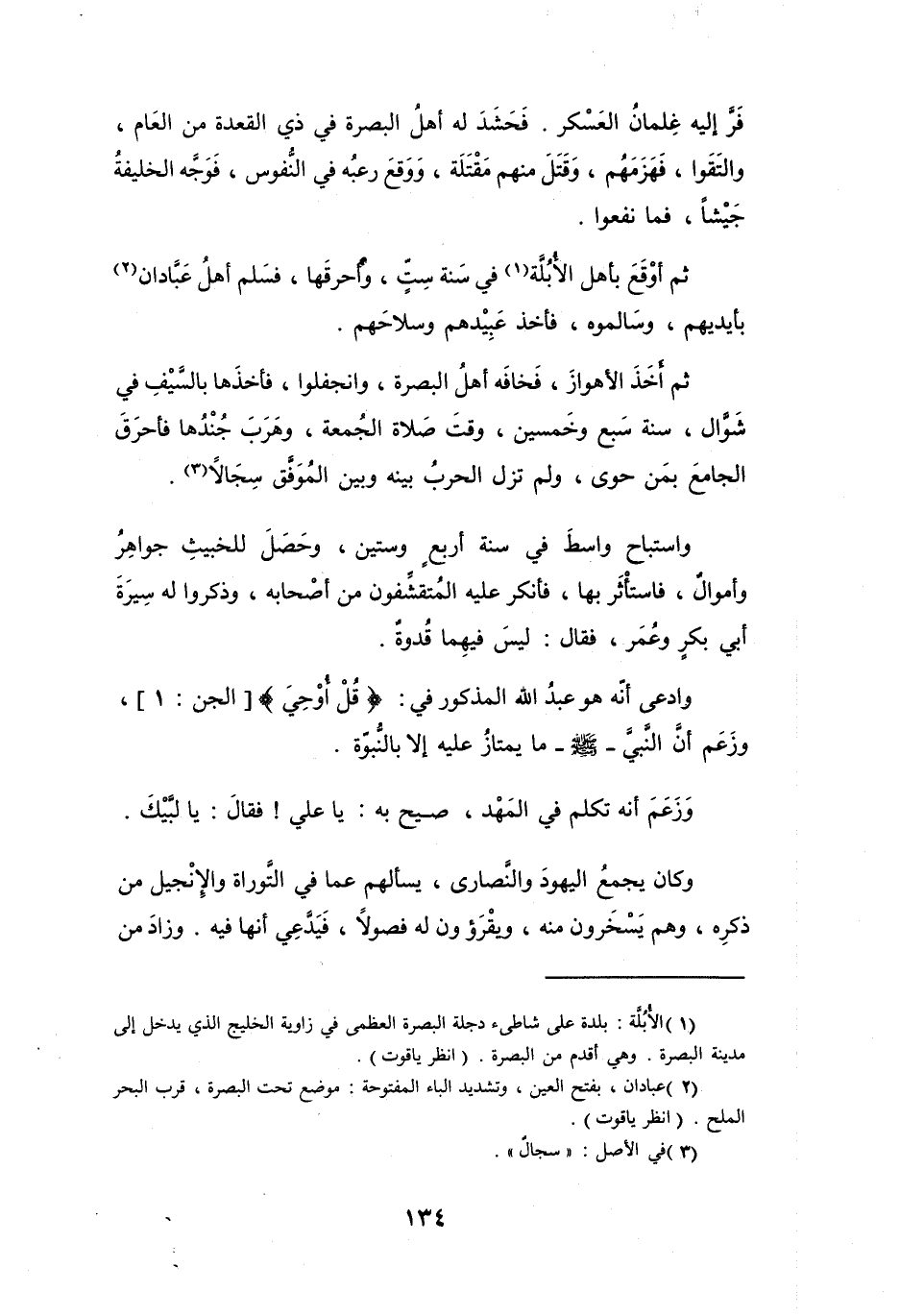 ثمَّ أَوْقَعَ بِأَهْلِ الأُبُلَّةِ (1) فِي سَنَةِ سِتٍّ، وَأَحْرَقَهَا، فَسَلَّمَ أَهْلُ عَبَّادَانِ (2) بِأَيدِيهِم، وَسَالَمُوهُ، فَأَخَذَ عَبِيْدَهُم وَسِلاَحَهُم.