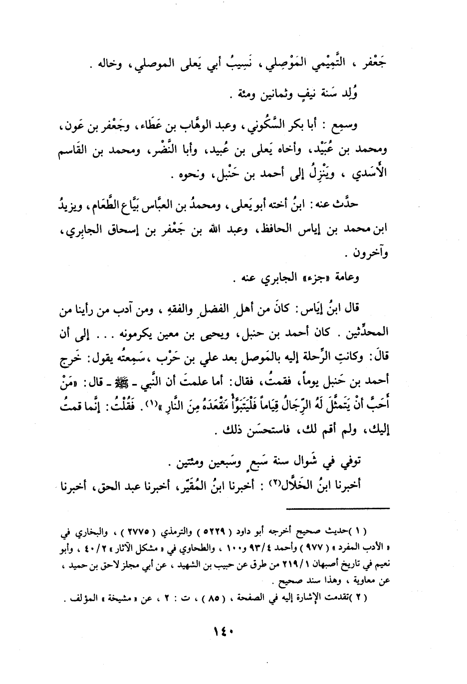 جَعْفَرٍ، التَّمِيْمِيُّ، المَوْصِلِيُّ، نَسِيبُ أَبِي يَعْلَى المَوْصِلِيِّ، وَخَالُه.